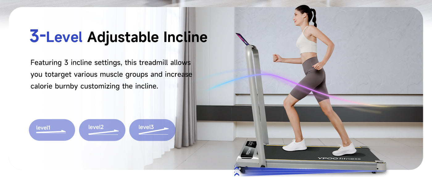 - 【Walking Pad With Incline】3-Level adjustable incline of the walking pad treadmill suits different fitness needs, can burn more calories and achieve better exercise results. Increase the intensity of your workout by adjusting the incline to simulate walking or running uphill. Adding fun and challenge to the exercise.The walking treadmill with incline is equipped with a 2.5HP quiet motor, won't disturb others. and The maximum weight capacity of this treadmill is up to 300lbs