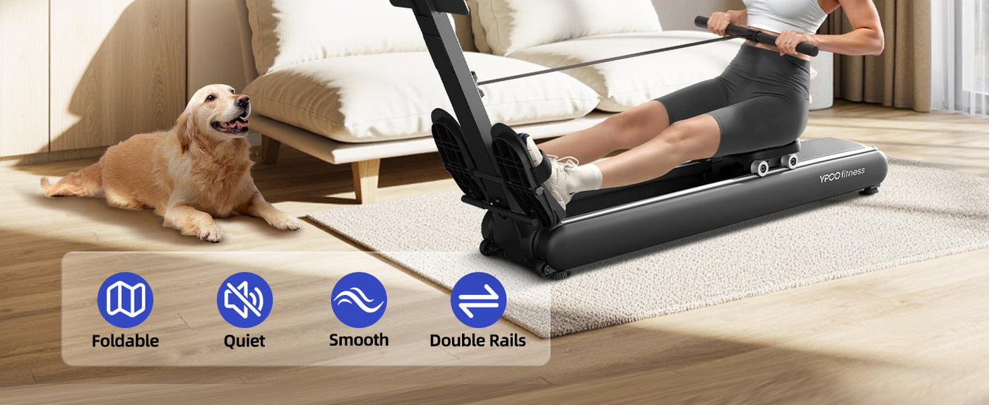 - 【Efficient Space-Saving】With a small footprint, YPOO Rowing machines for home gym will save you 95% storage space after being stowed upright. Built-in wheels and foldable desgins of the magnetic rowing machine foldable make it easy to move and store.It only covers 1.29sq.ft.