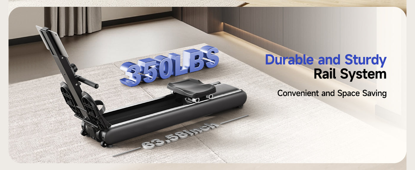 - 【Sturdy and User-Friendly Design】Size:63.6L x 16.3W x 31.9H, Dual slide rails of foldable rowing machine ensuring stability and safety, supporting up to 350 lbs capacity.The 63.58" range of rowing machine for home gym fits users from 4'5" to 6'2", suitable for everyone in the family can train comfortably.