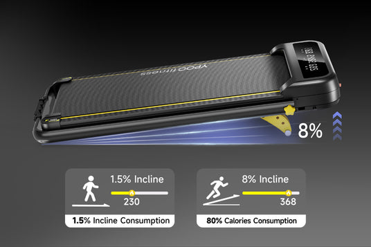 【3 Level Incline Treadmill】YPOO walking pad with handle bar offers a unique 8% manual incline, boosting calorie burn by up to 80% compared to a regular walking pad for home. With the adjustable incline of the folding treadmill, you can tailor your workout to meet your fitness goals, enhancing your home exercise experience.